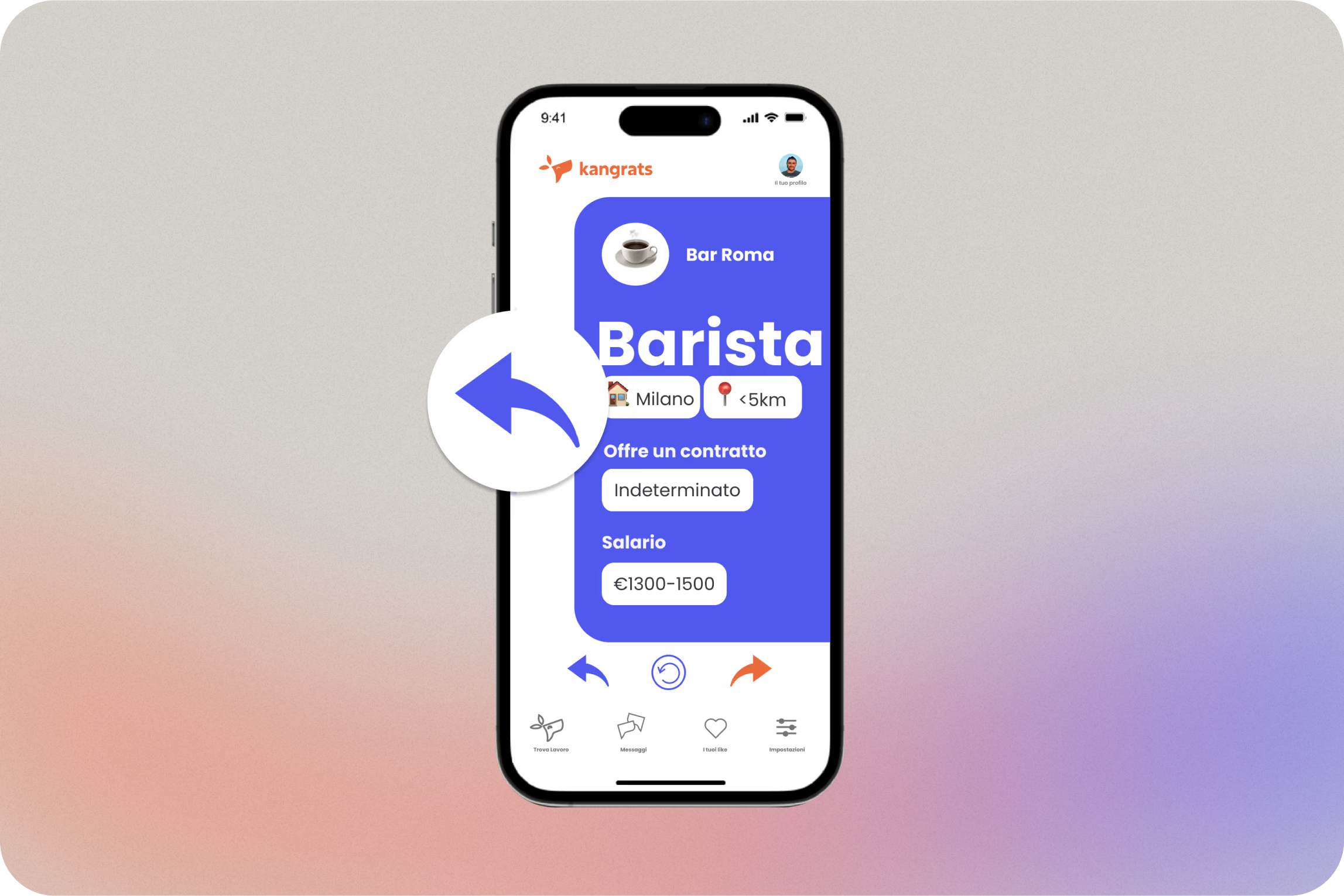 Kangrats non è un’agenzia per il lavoro: siamo una piattaforma innovativa che ti connette direttamente con i candidati giusti, sarai poi tu ad assumere il personale che trovi senza intermediari né costi nascosti.